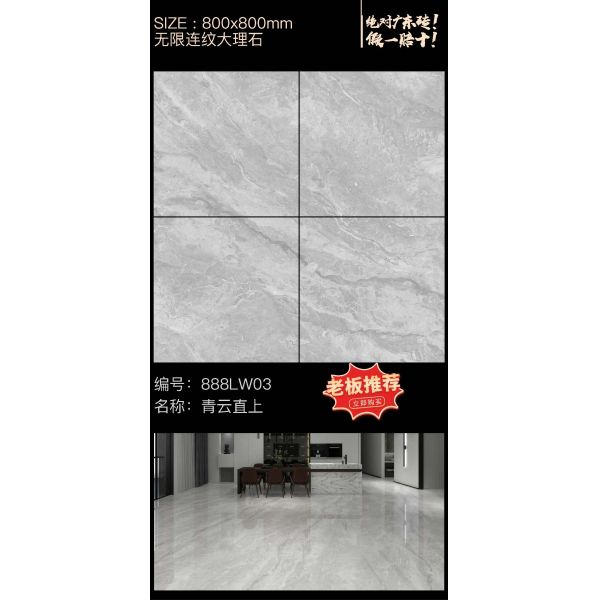 With a size of 800x800mm, these tiles are available in a variety of colors and designs, making it a popular choice for many interior design styles. The larger size also makes it easier to install and creates a seamless and spacious look in any room.